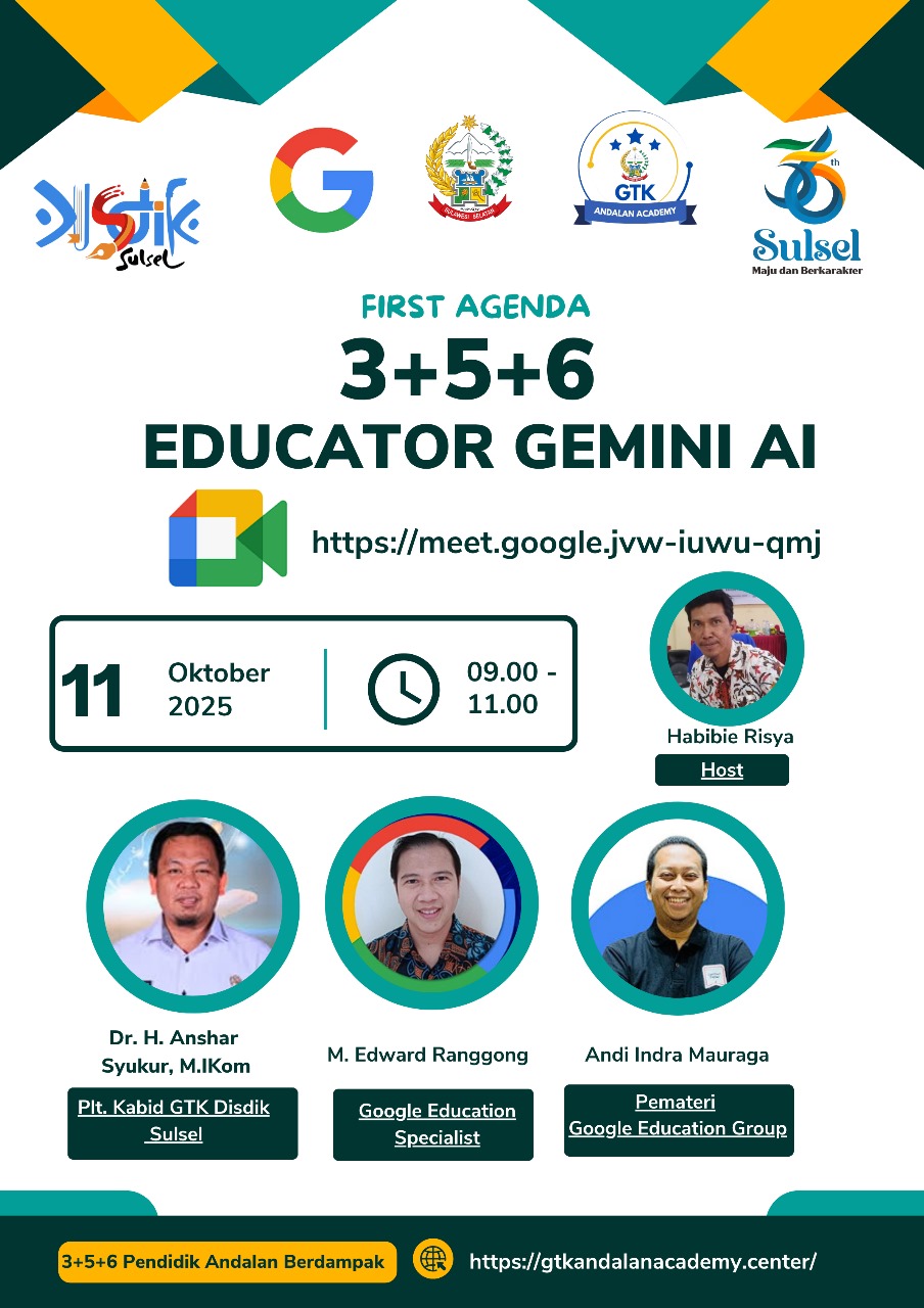 “Melalui rangkaian Program 3 + 5 + 6 ini, kami ingin mencetak pendidik yang unggul, cakap digital, dan berkarakter. Sertifikat Gemini AI adalah bentuk apresiasi sekaligus penguatan kompetensi digital bagi guru di Sulsel,” jelas Dr. Anshar.