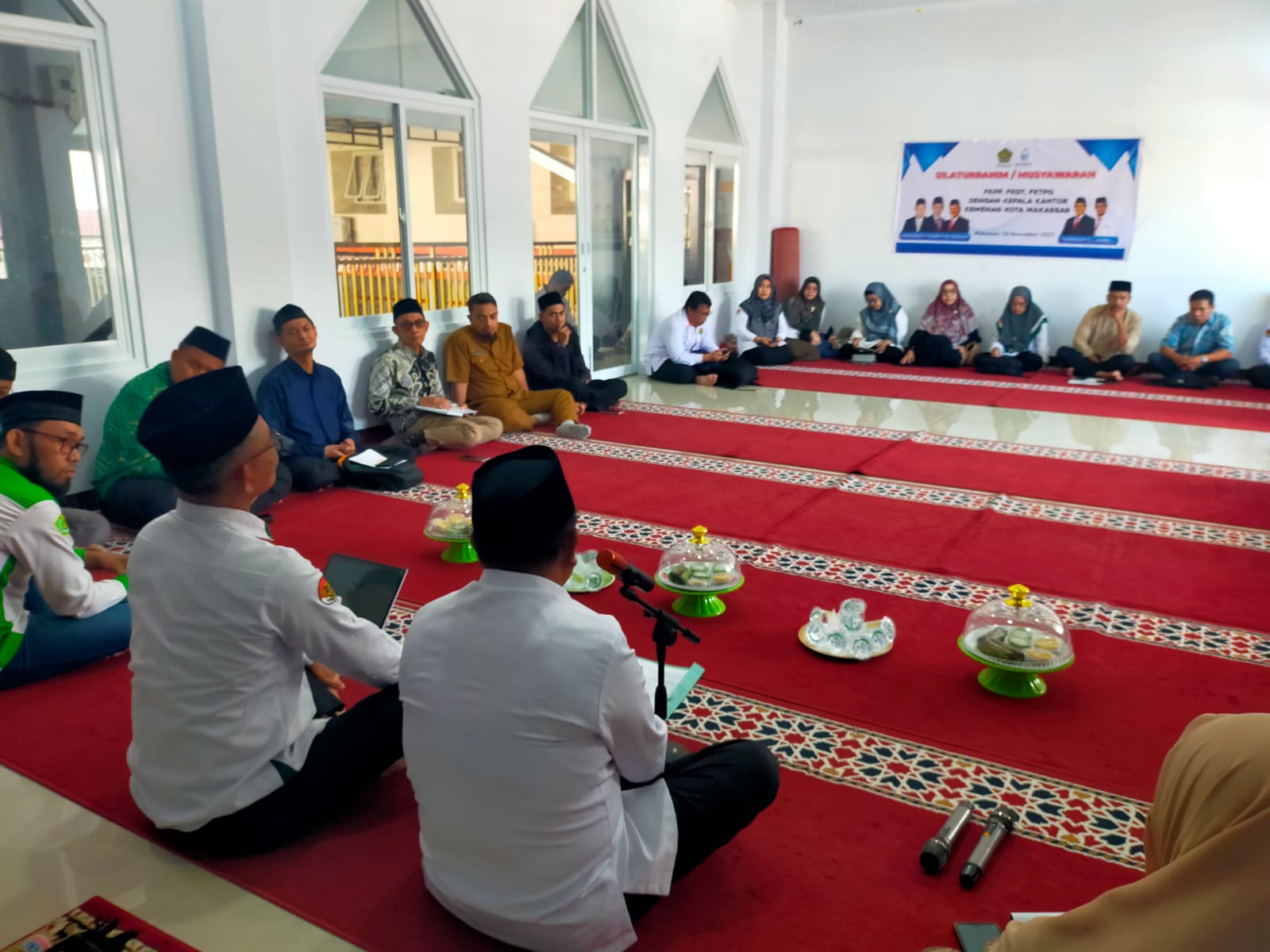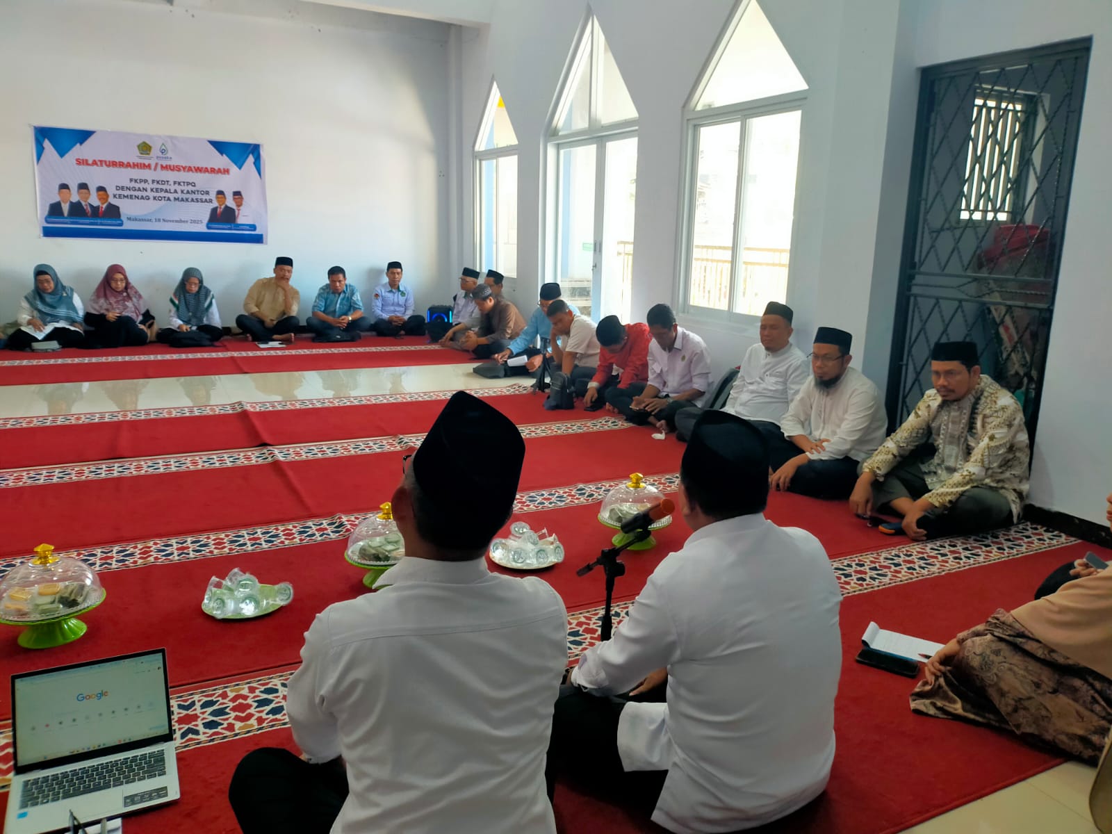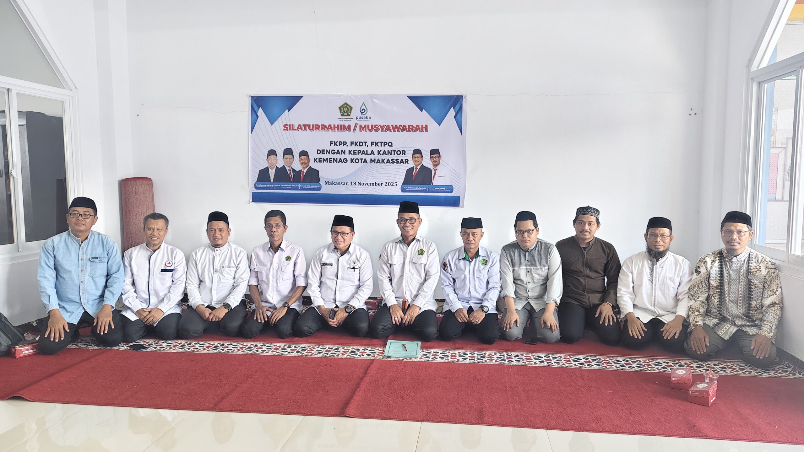 Kakankemenag Kota Makassar, H. Muhammad bersama Kasi PD Pontren Hasan Pinang menggelar silaturahmi dan musyawarah bersama pengurus FKPP, FKDT dan FKTPQ di Musholla Irsyad Kemenag Kota Makassar.