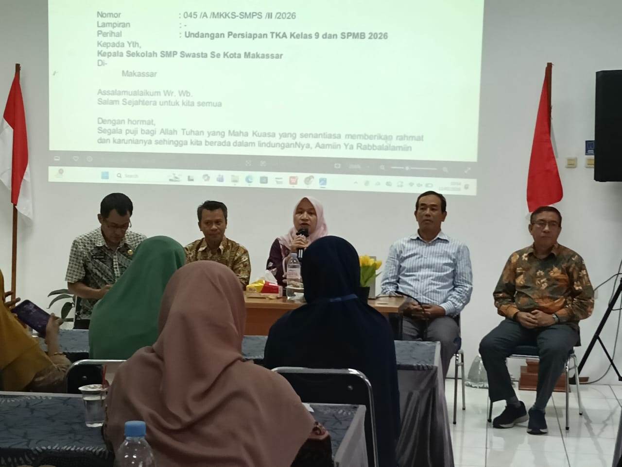 Ketua MKKS SMP Swasta Kota Makassar, Mulahizhun Amien,. S.Pd. MM menyatakan bahwa persiapan TKA tahun ini akan difokuskan pada standarisasi kualitas lulusan sekolah swasta agar mampu bersaing secara akademik. Namun, sorotan utama dalam pertemuan tersebut adalah kehadiran Kepala Dinas Pendidikan (Disdik) Kota Makassar yang membawa kabar segar terkait integrasi sistem pendidikan.