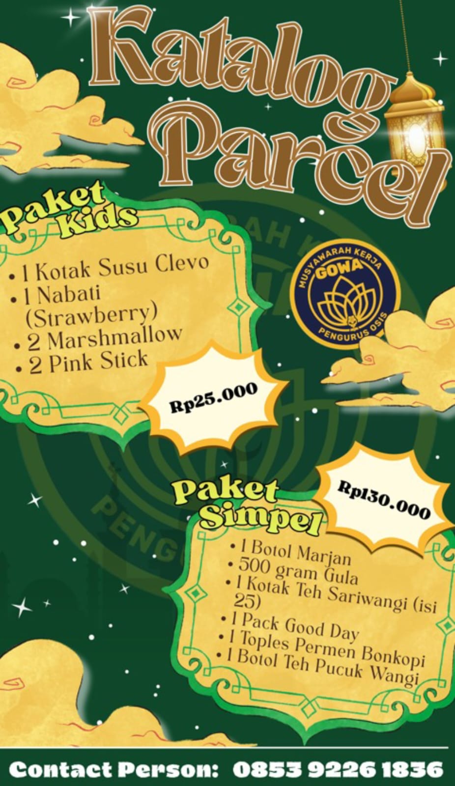 “Kami mengajak Bapak dan Ibu Guru serta masyarakat untuk turut mendukung kegiatan ini dengan memesan paket parsel yang telah disiapkan panitia MKP OSIS Gowa,” ujar perwakilan panitia.
