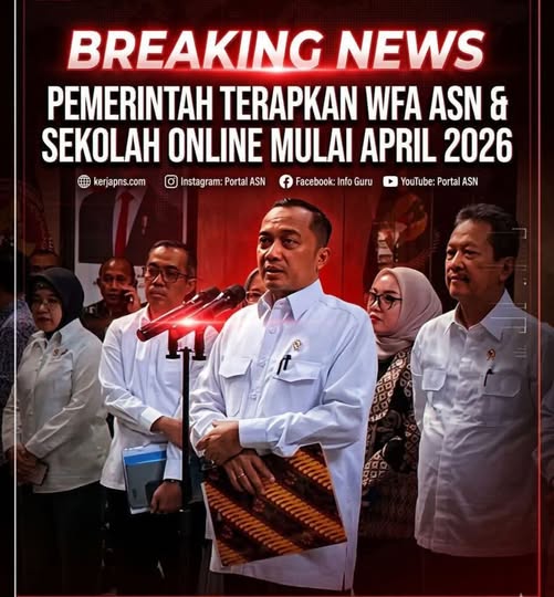 Pemerintah sedang menyiapkan kebijakan Work From Anywhere (WFA) untuk ASN serta pembelajaran sekolah secara online yang direncanakan mulai April 2026.